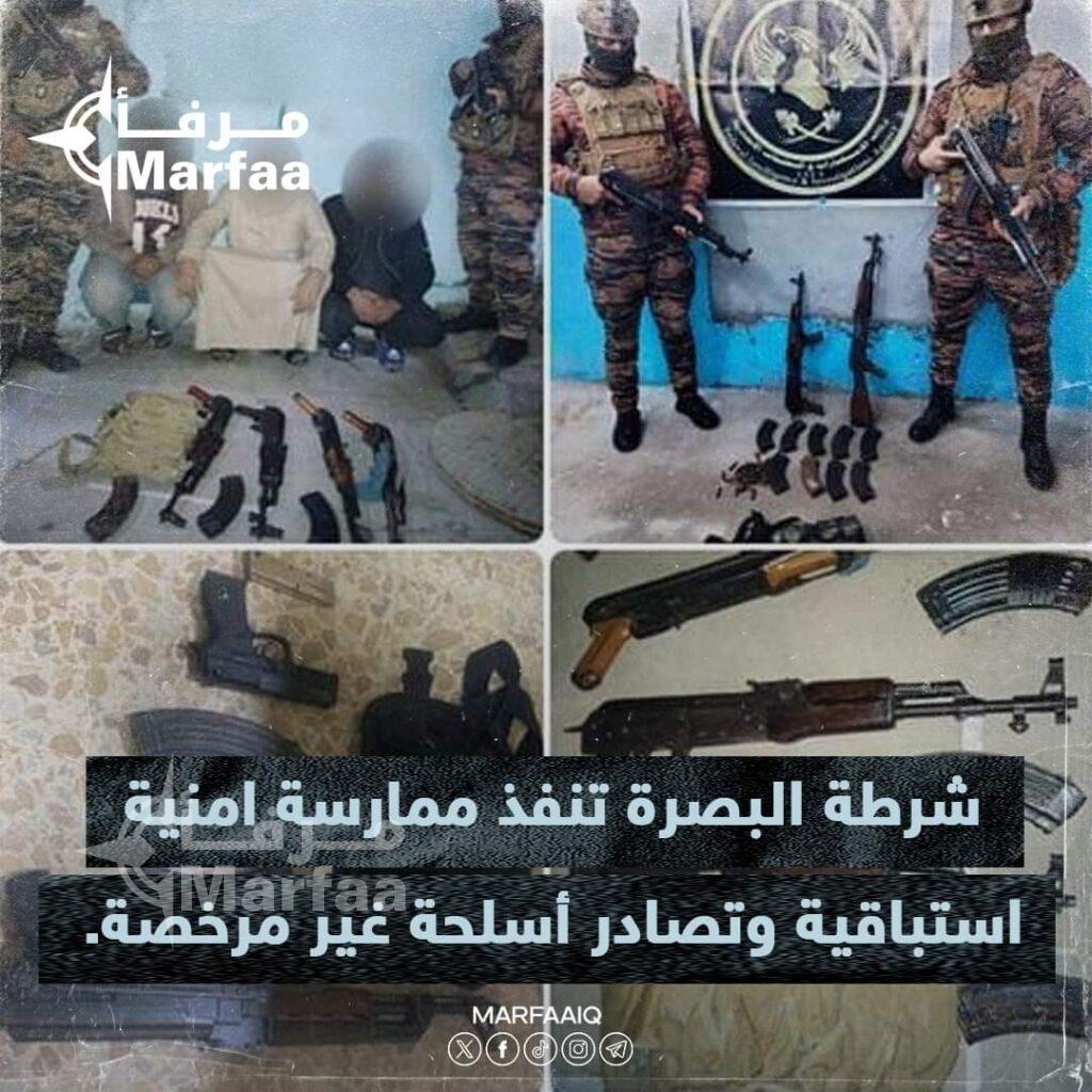 شرطة البصرة تنفذ ممارسة امنية استباقية وتصادر أسلحة غير مرخصة.